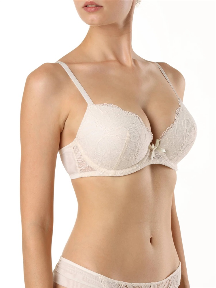 Push-up. Формованная чашка. На каркасах. Боковые детали стана на сетчатой подкладке. Отстёгивающиеся бретели, которые можно перестегнуть на спинке крест-накрест. Дополнительный объем для соблазнительного образа. Чувственное, изящное и безупречно сидящее по фигуре белье.