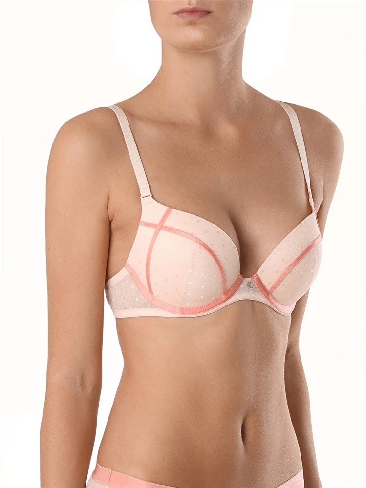 Бюстгальтер серии Galaxy – это легкое жаккардовое полотно в мелкую сеточку с рисунком, напоминающим россыпь звезд в небе, лаконичные тесьмы с атласным блеском и безупречная посадка по фигуре.