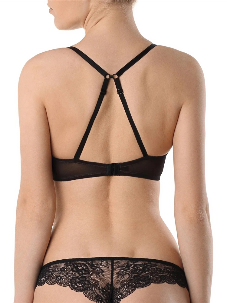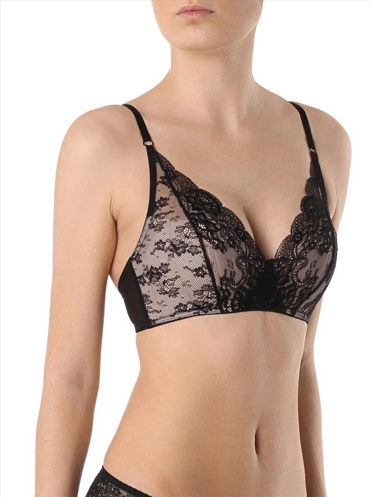 Бюстгальтер из эластичного сетчатого полотна, неэластичного кружевного полотна и неэластичного кружева. Без каркасов.