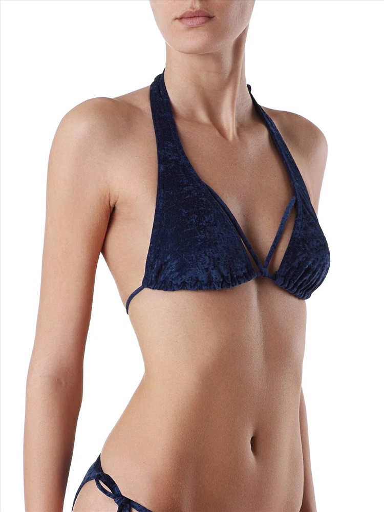 Лиф ROXY VELVET с треугольными чашками и аккуратной драпировкой по низу - must have этого лета! Трендовый эффект бархата внесет стильную изюминку в пляжный образ, а декоративные шнурки на лифе подчеркнут линию декольте и визуально увеличат грудь.
