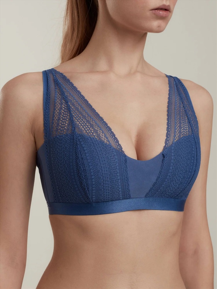 Бюстгальтер бралетт без каркасов Vintage RB7115 выполнен из кружева с ажурным орнаментальным рисунком и прямым краем. Чашки на подкладке из дубляжа с хлопком. Современный образ, безупречная посадка на фигуре и абсолютный комфорт – визитная карточка модели.