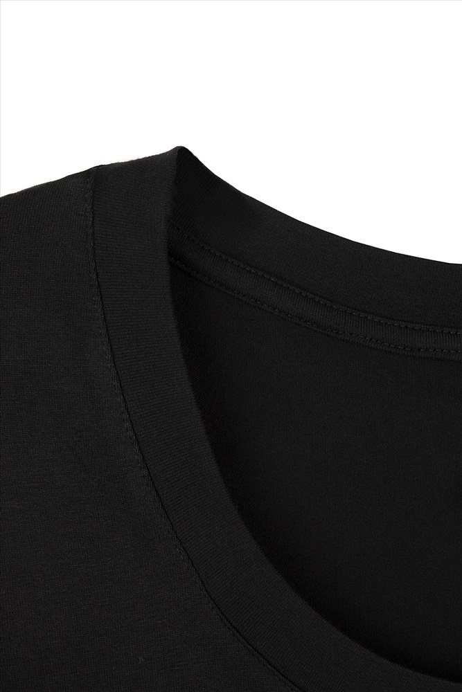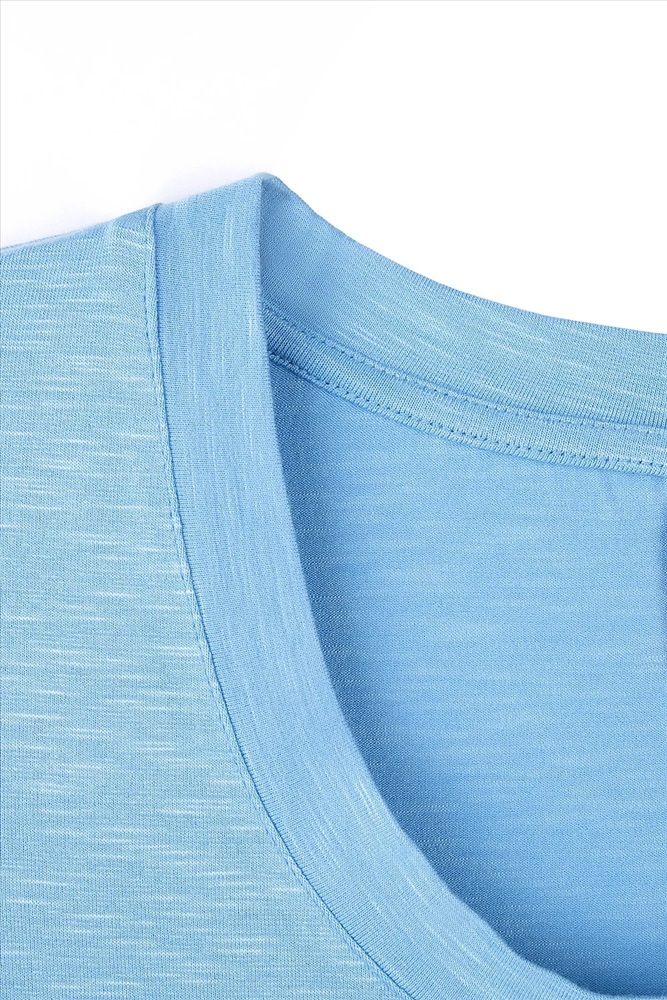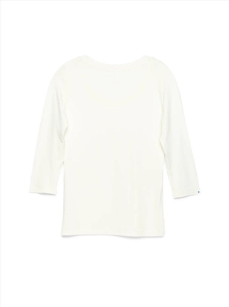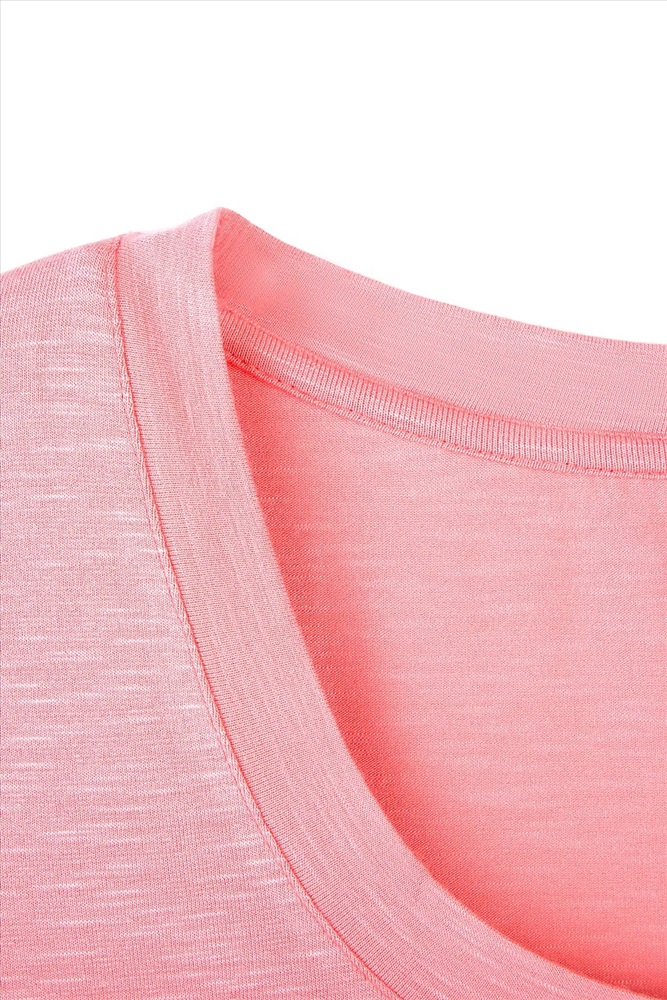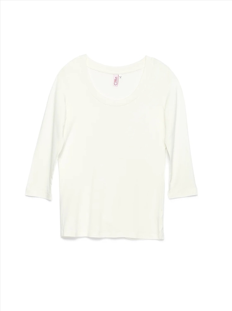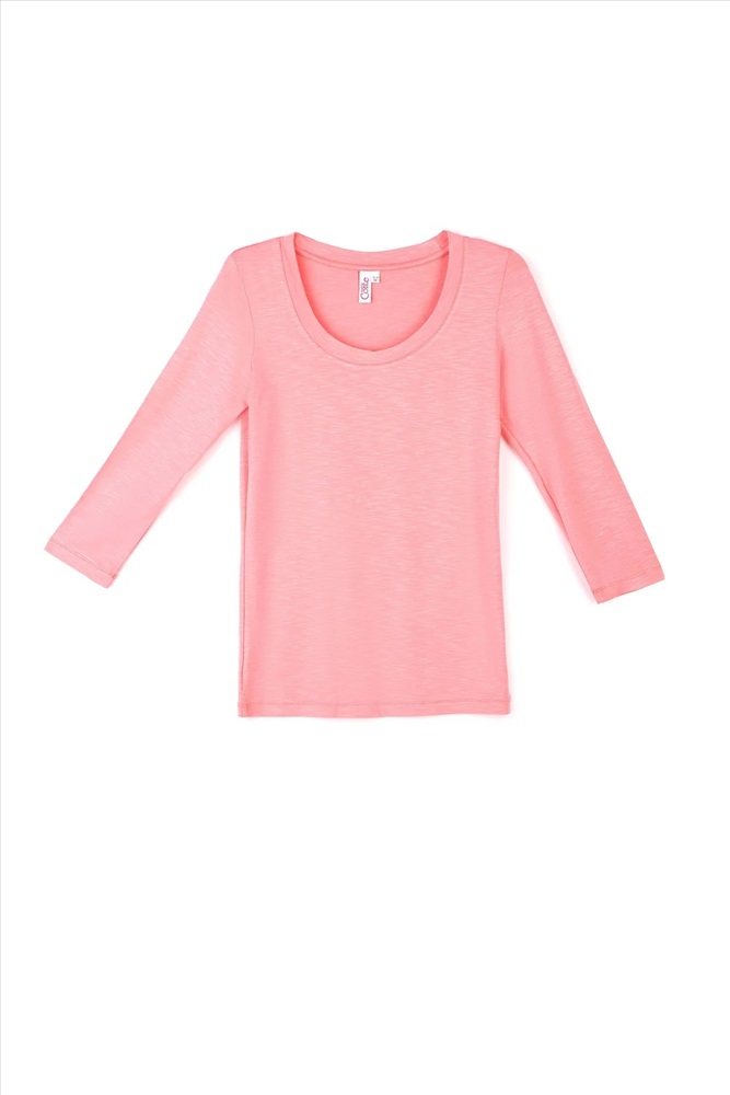 Джемпер женский из однотонного трикотажного полотна с втачным рукавом длиной 3/4. Круглая горловина изделия обработана планкой. По шву притачивания планки - отделочная строчка.