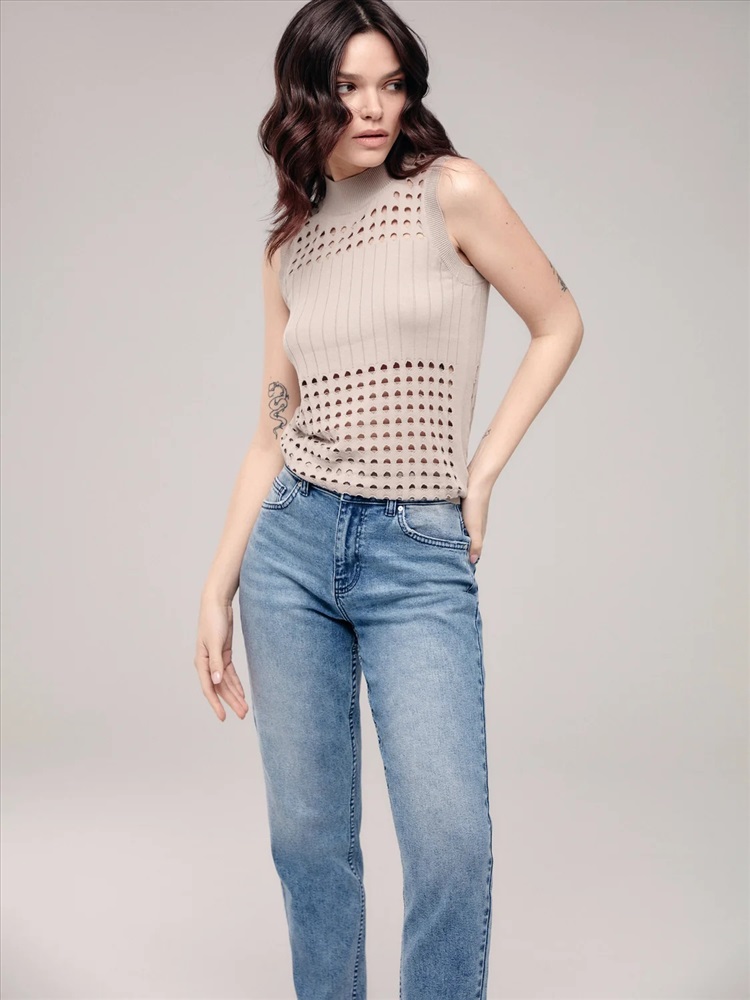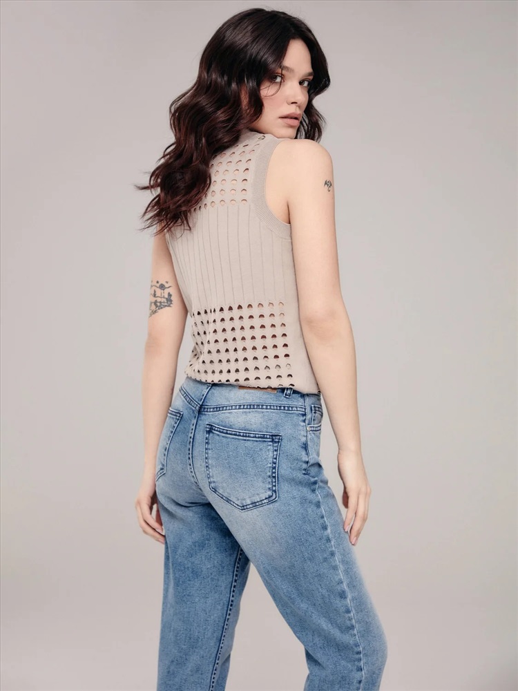 Джемпер без рукавов с ажурным переплетением и рубчиком LDK 194 станет источником вдохновения для множества стильных образов.