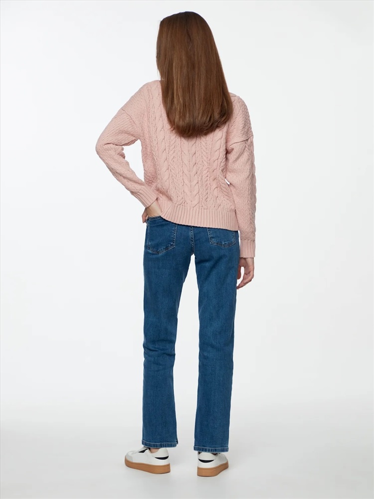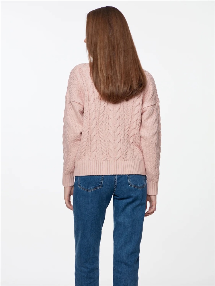 Фактурный джемпер с оригинальным объемным переплетением, имитирующим ручное вязание, поможет создать множество новых образов, не изменяя собственному стилю.