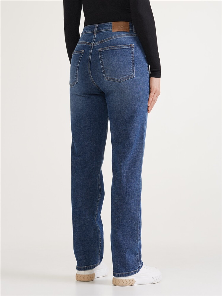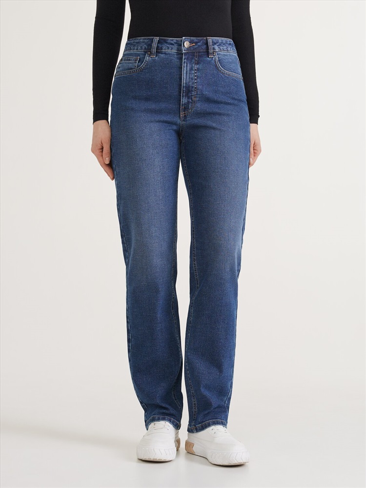 Джинсы прямого кроя из плотного eco-friendly денима классического синего цвета – это модель size plus (размерный ряд от М до 4XL). Отличный вариант для создания интересных casual-капсул в гардеробе каждой стильной женщины. Джинсы идеально держат форму, прекрасно подчеркивают фигуру и не сковывают движения.
