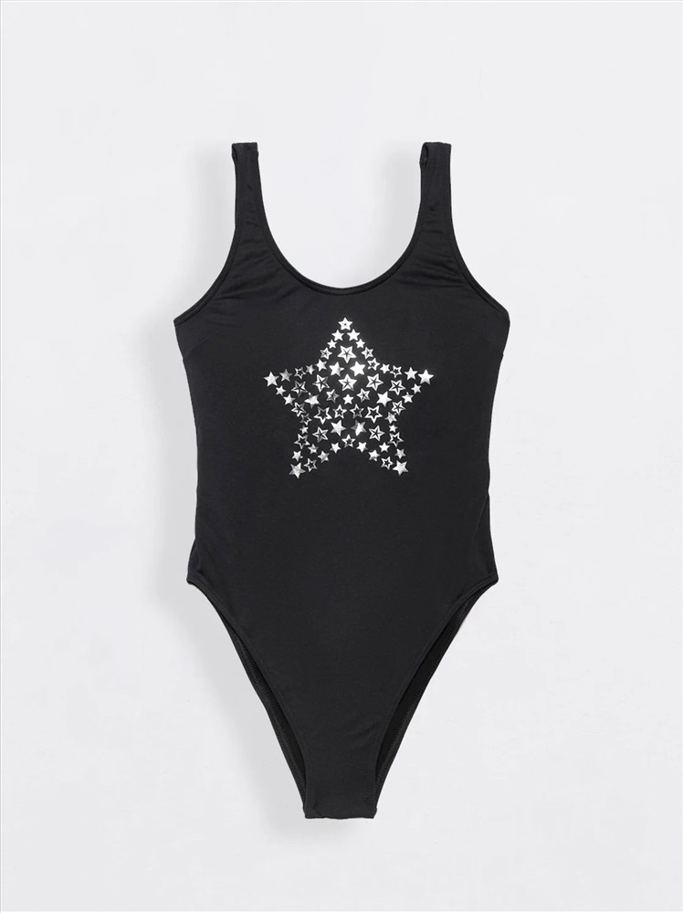 Слитный классический купальник с мягкими чашками BIG STAR оценят девушки, которым нравится комфорт и удобство. Стильную изюминку в пляжный образ внесет звездный принт, нанесенный методом металлической печати.