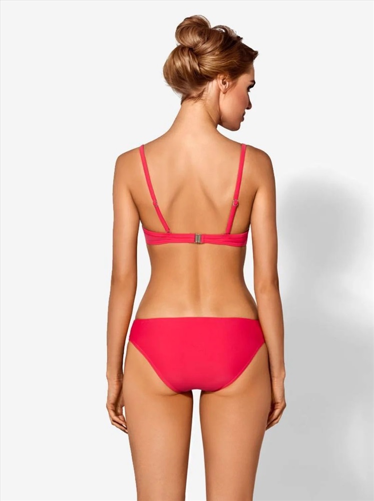 Лиф купального костюма с жесткой формованной чашкой «PUSH-UP» на каркасах, оформлен шнуром контрастного цвета и декоративным украшением по ластовице. Фиксируется регулируемой бретелью и застежкой по спине.