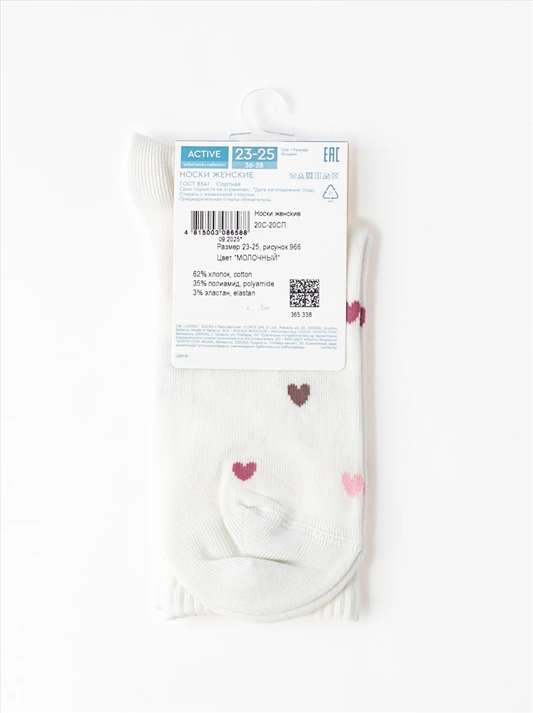 Производитель: Conte elegant; Российский размер: 23, 25; Артикул поставщика: ACTIVE 20С-20СП; Состав: хлопок 62%, полиамид 35%, эластан 3%; Год: 2025; Страна: Беларусь