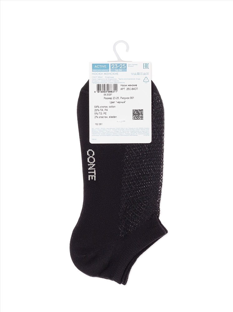 Производитель: Conte elegant; Российский размер: 23, 25; Артикул поставщика: ACTIVE (ультракороткие) 25С-84СП; Состав: хлопок 64%, полиамид 29%, полиэстер 5%, эластан 2%; Год: 2025; Страна: Беларусь Носки женские CONTE ELEGANT ACTIVE, 961