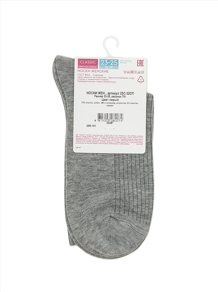 Производитель: Conte elegant; Российский размер: 23, 25; Артикул поставщика: CLASSIC 25С-32СП; Состав: хлопок 70%, полиамид 28%, эластан 2%; Год: 2025; Страна: Беларусь