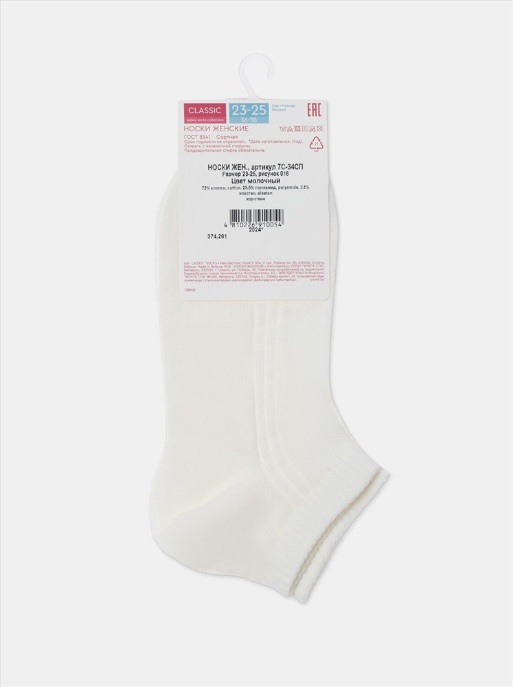 Производитель: Conte elegant; Российский размер: 23, 25; Артикул поставщика: CLASSIC (короткие) 7С-34СП; Состав: хлопок 72%, полиамид 25.5%, эластан 2.5%; Год: 2025; Страна: Беларусь Укороченные спортивные женские носки из хлопка, однотонные и с рисунками.