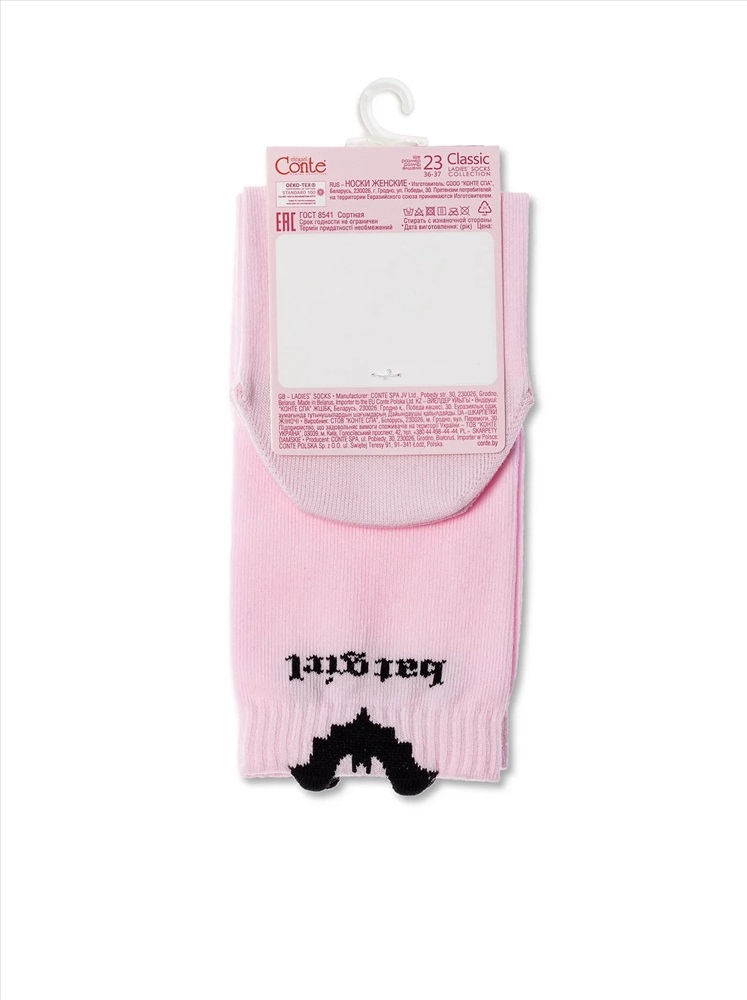 Производитель: Conte elegant; Российский размер: 23; Артикул поставщика: CLASSIC с пикотом «Batgirl»; Состав: хлопок 68%, полиамид 30%, эластан 2%; Год: 2021; Страна: Беларусь