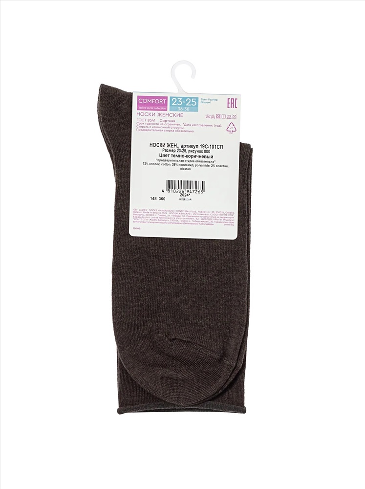 Производитель: Conte elegant; Российский размер: 23, 25; Артикул поставщика: COMFORT (без резинки) 19С-101СП; Состав: хлопок 72%, полиамид 26%, эластан 2%; Год: 2025; Страна: Беларусь
