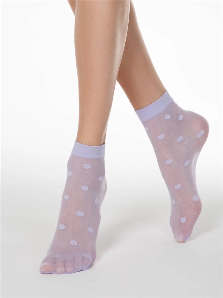 Производитель: Conte elegant; Артикул поставщика: FANTASY 20; Состав: полиамид 91%, эластан 9%; Год: 2021; Страна: Беларусь; Российский размер: 23, 25 Эластичные полупрозрачные носки в горошек станут стильным акцентом вашего модного образа. Вы оцените удобный эластичный борт и комфортную облегающую посадку на ноге.
