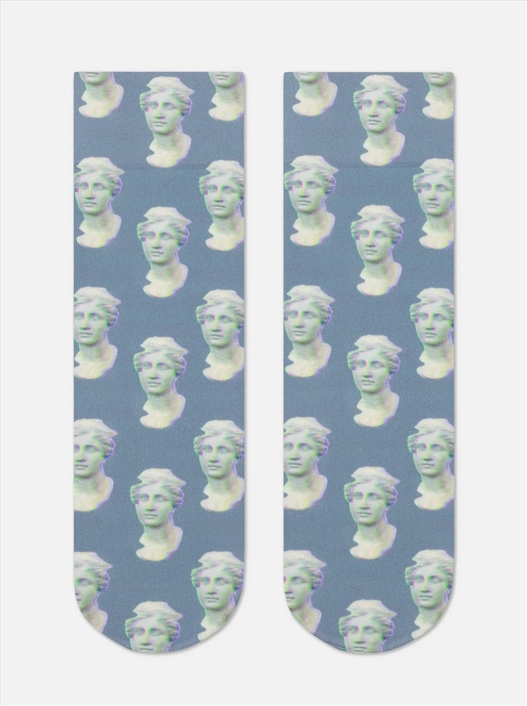 Плотные носки с особенно устойчивым рисунком, нанесенным с помощью термотрансферной печати, станут стильным и индивидуальным акцентом в повседневных образах. Термотрансферная печать - процесс, при котором специальная краска на бумажном носителе резко нагревается, переходит из твердого состояния в газообразное и переносится с бумаги на носки, глубоко проникая в волокна и создавая устойчивое изображение. · 70 den· плотное и эластичное волокно с микрофиброй· рисунок, нанесенный с помощью термотрасферной печати· эффект 3D· c бортом· без пятки· стиль начинается с индивидуальности.