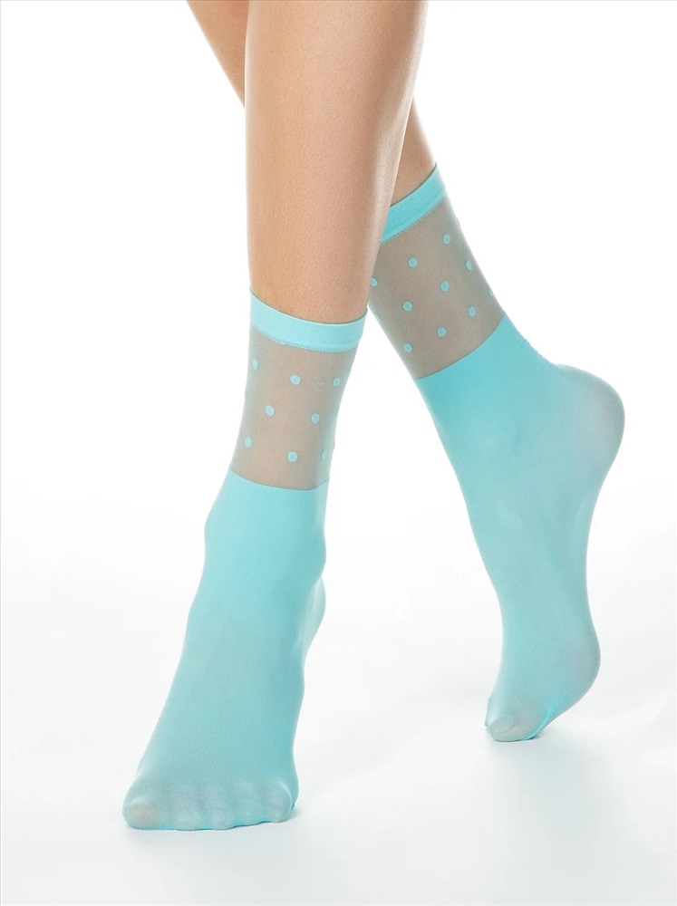Удлиненные носки с прозрачным верхом в горошек созданы для девушек, которые любят выглядеть оригинально и с удовольствием подчеркивают свою индивидуальность.