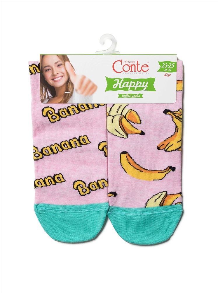 Производитель: Conte elegant; Артикул поставщика: HAPPY c рисунками "Бананы"; Состав: хлопок 70%, полиамид 28%, эластан 2%; Год: 2021; Страна: Беларусь; Российский размер: 23, 25