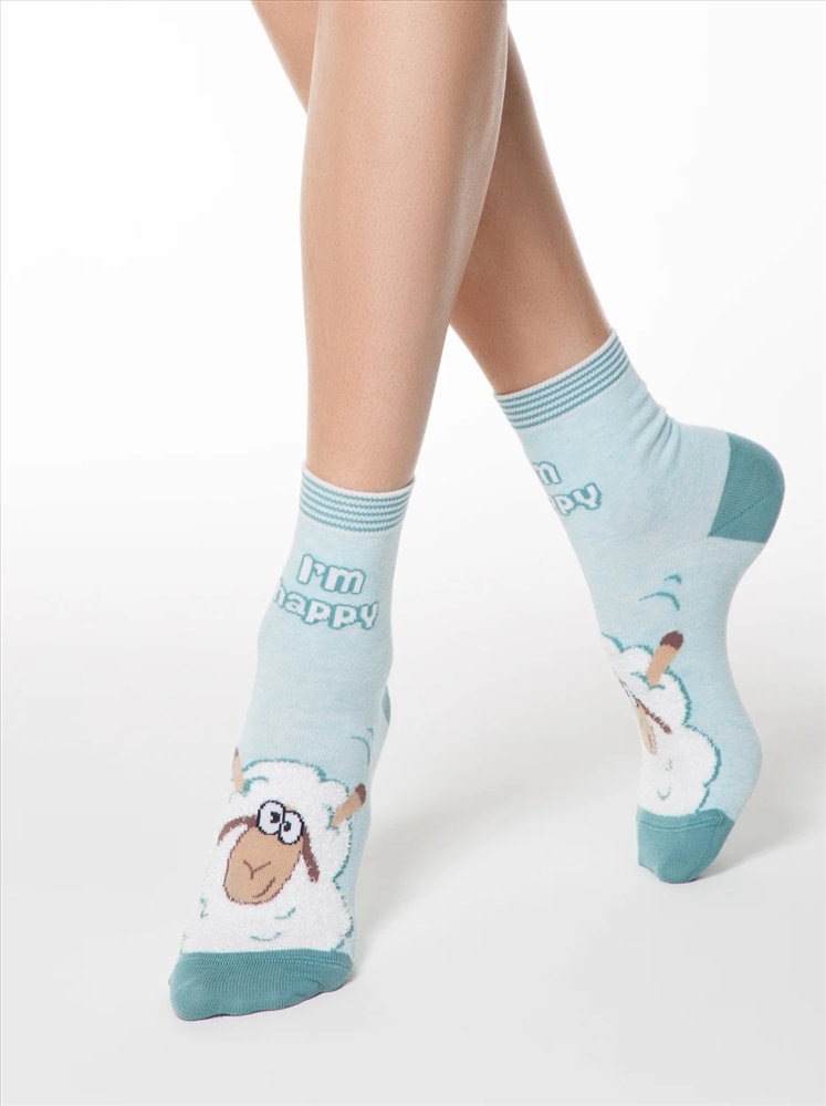 Производитель: Conte elegant; Артикул поставщика: HAPPY с пушистым рисунком "Барашек"; Состав: хлопок 54%, полиамид 25%, полиэстер 19%, эластан 2%; Год: 2021; Страна: Беларусь; Российский размер: 23, 25