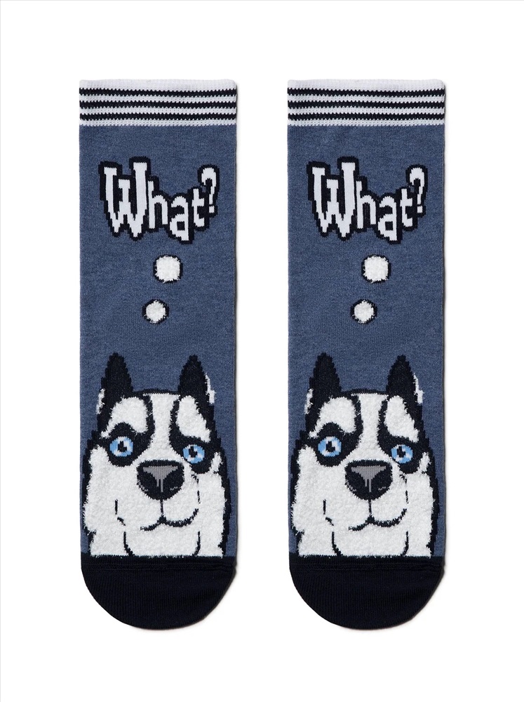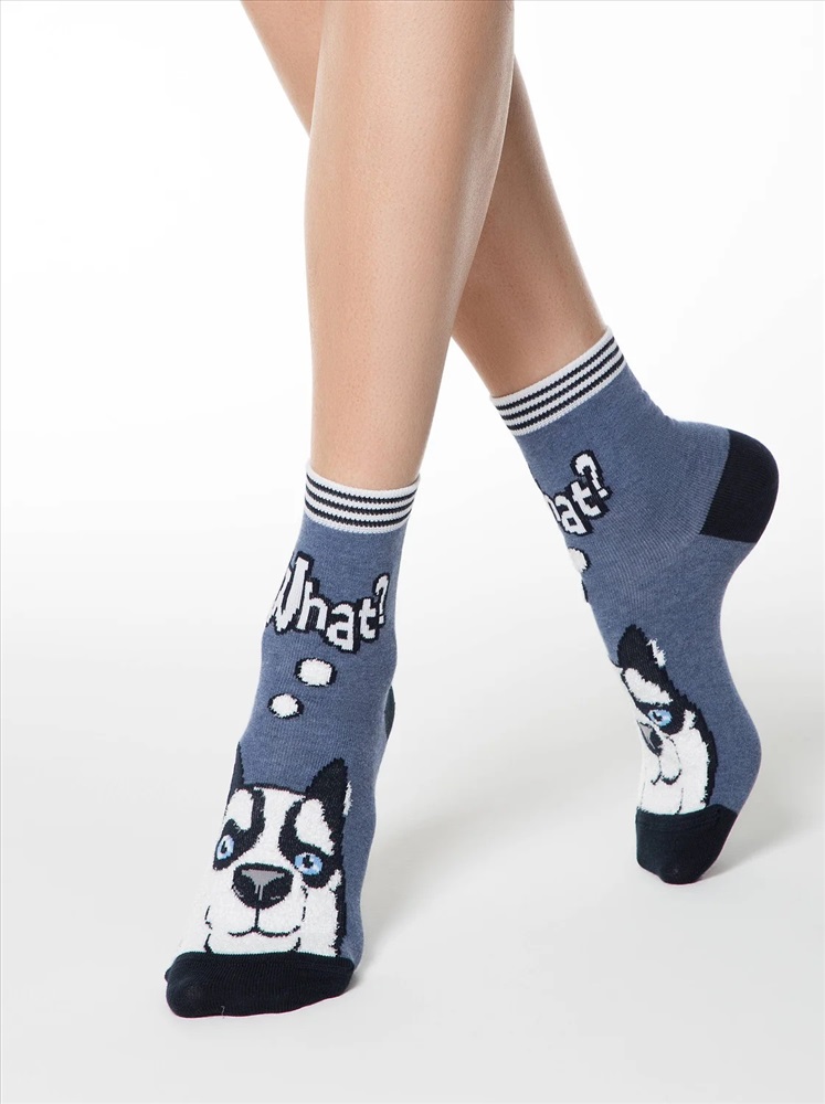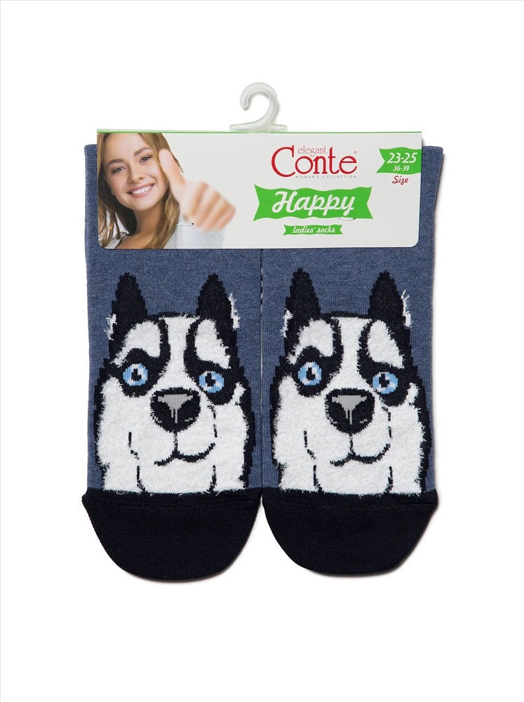 Производитель: Conte elegant; Артикул поставщика: HAPPY с пушистым рисунком "Хаски"; Состав: хлопок 54%, полиамид 25%, полиэстер 19%, эластан 2%; Год: 2021; Страна: Беларусь; Российский размер: 23, 25
