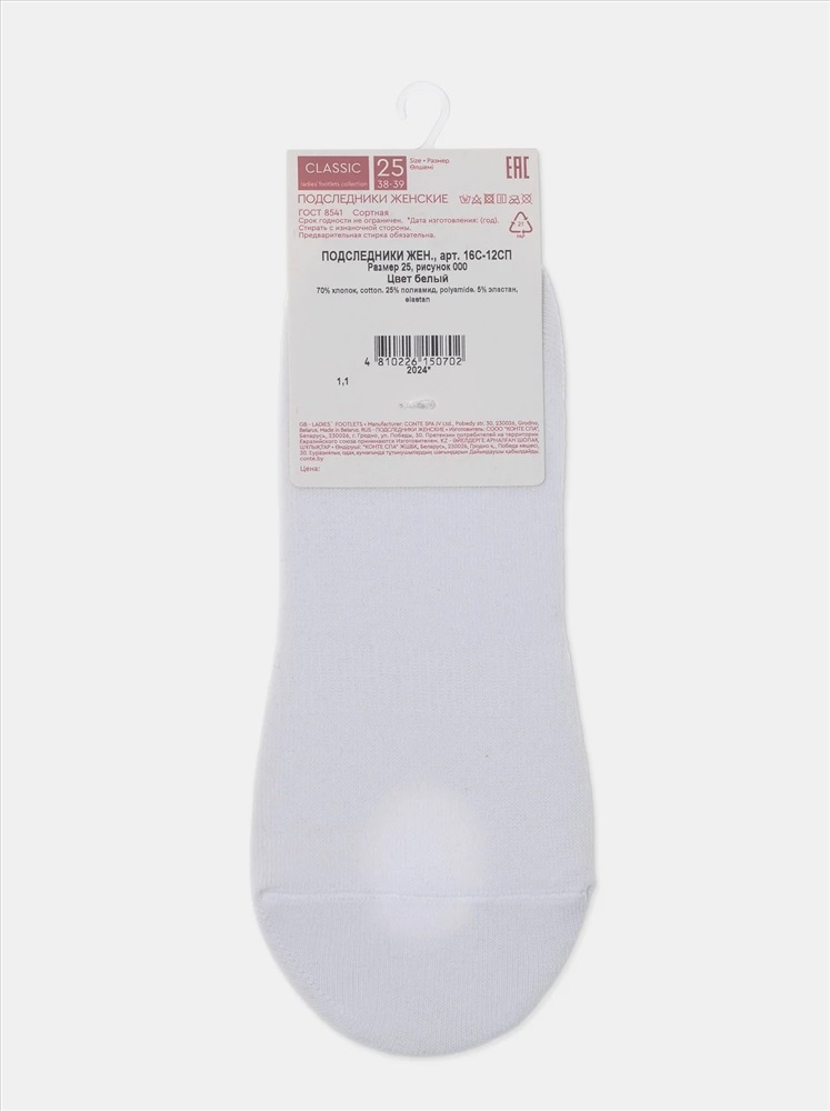 Производитель: Conte elegant; Российский размер: 23, 25; Артикул поставщика: CLASSIC 16С-12СП; Состав: хлопок 70%, полиамид 25%, эластан 5%; Год: 2025; Страна: Беларусь Женские подследники из хлопка, мягкие и эластичные, на запяточной части антискользящее покрытие для предотвращения сползания, однотонные и с рисунками.