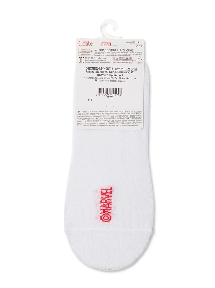 Производитель: Conte elegant; Российский размер: 23; Артикул поставщика: ©Marvel; Состав: хлопок 54%, полиамид 25%, полиэстер 18%, эластан 3%; Год: 2021; Страна: Беларусь