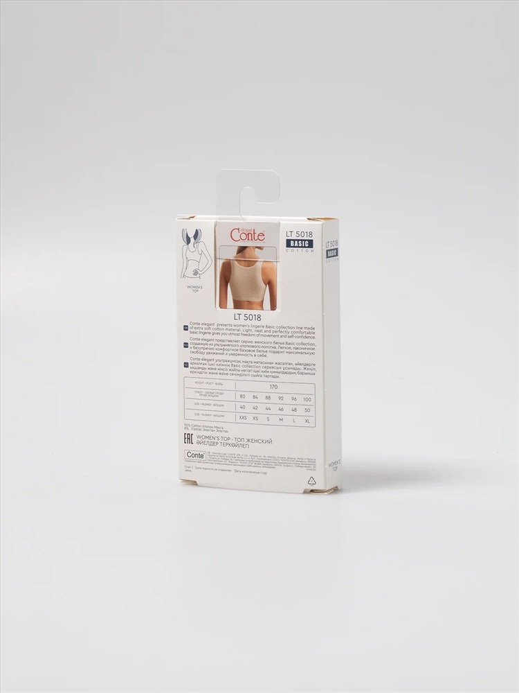 Производитель: Conte elegant; Российский размер: 42; Обхват груди: 84; Артикул поставщика: BASIC COLLECTION LT 5018 (коробочка); Состав: хлопок 92%, эластан 8%; Год: 2025; Страна: Беларусь; Рост: 170
