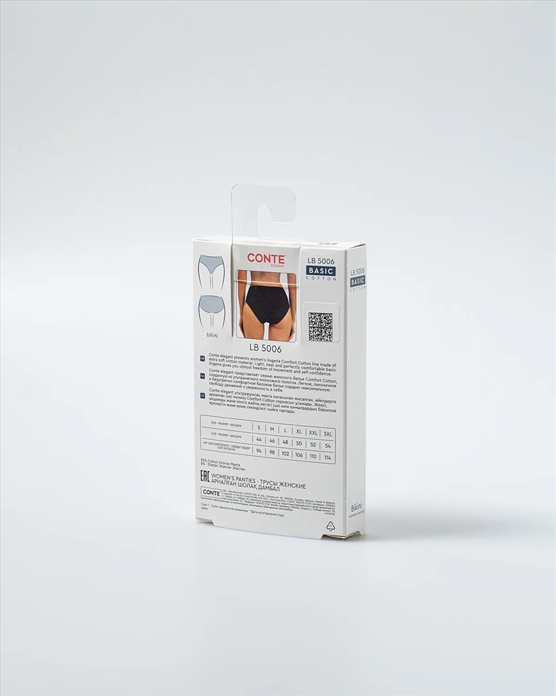 Производитель: Conte elegant; Российский размер: 44; Обхват бедер: 94; Артикул поставщика: BASIC COLLECTION LB 5006 (коробочка); Состав: хлопок 92%, эластан 8%; Год: 2025; Страна: Беларусь