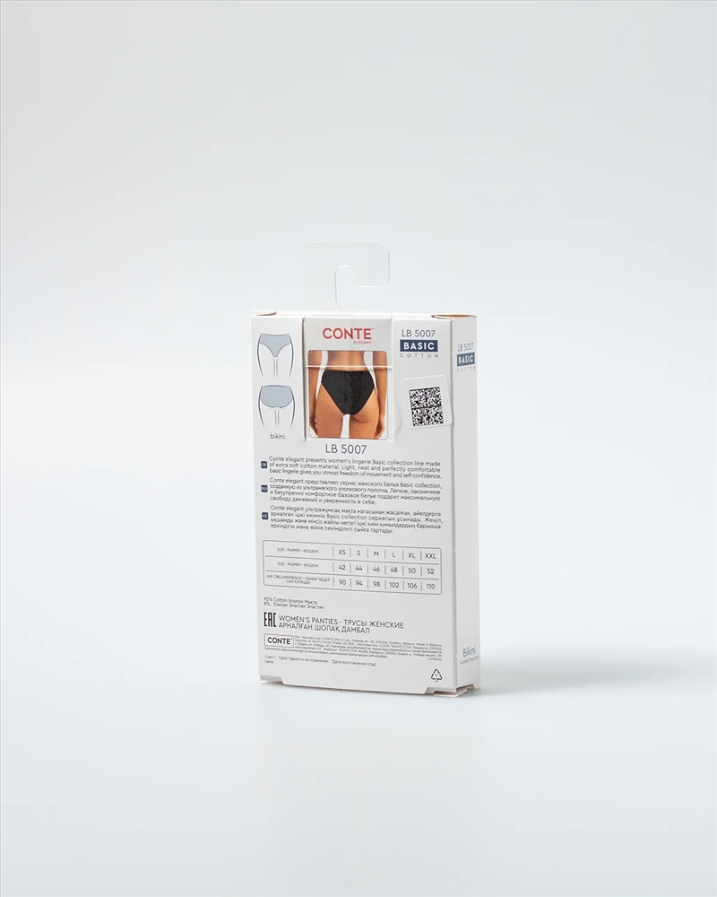 Производитель: Conte elegant; Артикул поставщика: BASIC COLLECTION LB 5007 (коробочка); Состав: хлопок 92%, эластан 8%; Год: 2025; Страна: Беларусь; Российский размер: 42; Обхват бедер: 90