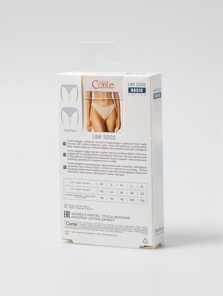 Производитель: Conte elegant; Артикул поставщика: BASIC COLLECTION LBR 5002 (коробочка); Состав: хлопок 92%, эластан 8%; Год: 2025; Страна: Беларусь; Российский размер: 42; Обхват бедер: 90