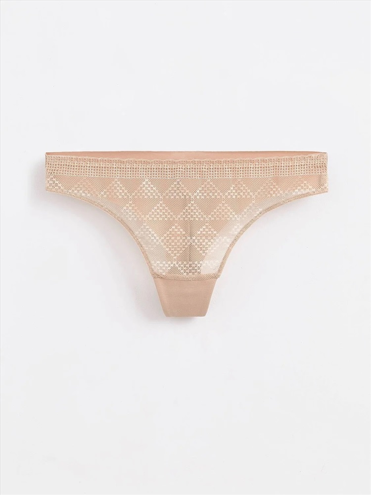 Бесшовные трусы «бразилиана» из хлопка с оригинальным фактурным кружевом DEMURE LBR 1280 созданы, чтобы подчеркнуть силуэт и подарить абсолютный комфорт.