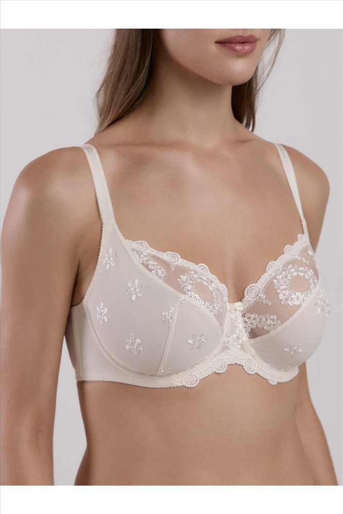 Серия IDEAL – это настоящая история о лёгкости и воздушности. Каждое изделие в коллекции создано с любовью к деталям и вниманием к комфорту, чтобы вы могли чувствовать себя уверенно в любой ситуации. Продуманная конструкция бюстгальтера хорошо поддерживает грудь и дарит ощущение комфорта при носке. • мягкая чашка с тройным диагональным членением • усиленные каркасы • диагональная линия выполнена с фигурным изгибом • верхние детали из вышивки с цветочно-геометрическим рисунком • нижние детали из неэластичного трикотажного полотна с цветочно-геометрическим рисунком • регулируемые бретели • сохранение формы и цвета при соблюдении рекомендаций по уходу • нежная и комфортная модель.