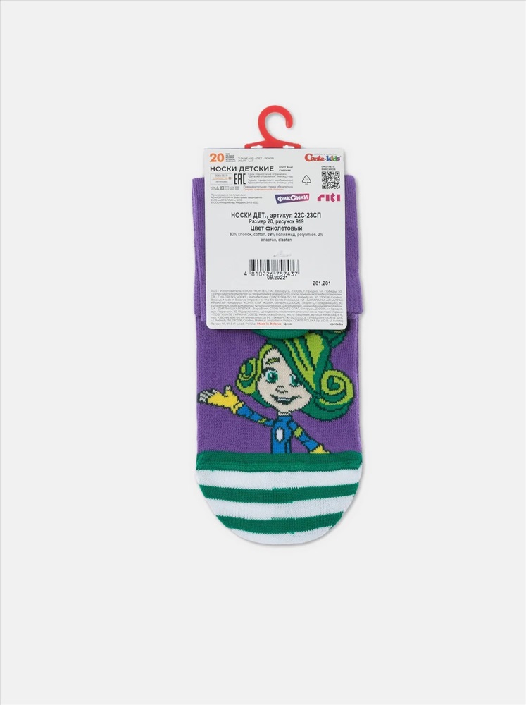 Производитель: CONTE-KIDS; Российский размер: 16; Длина стопы: 15-17; Артикул поставщика: 22С-23СП; Состав: хлопок 60%, полиамид 38%, эластан 2%; Год: 2022; Страна: Беларусь Носки детские CONTE-KIDS ФИКСИКИ