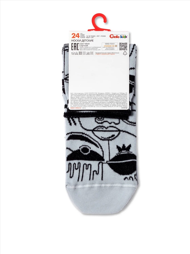 Производитель: CONTE-KIDS; Артикул поставщика: 5С-11СП; Состав: хлопок 72%, полиамид 25,5%, эластан 2,5%; Год: 2021; Страна: Беларусь; Длина стопы: 22-24 Детские носки из хлопка, однотонные и с рисунками. Для девочек и мальчиков.