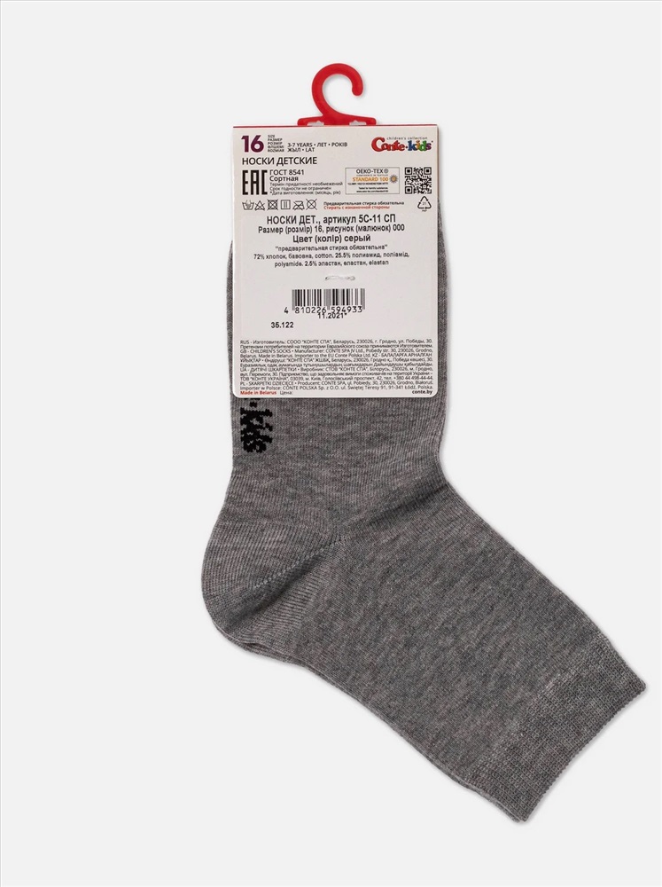 Производитель: CONTE-KIDS; Российский размер: 14; Длина стопы: 13-15; Артикул поставщика: 5С-11СП; Состав: хлопок 72%, полиамид 25,5%, эластан 2,5%; Год: 2021; Страна: Беларусь
