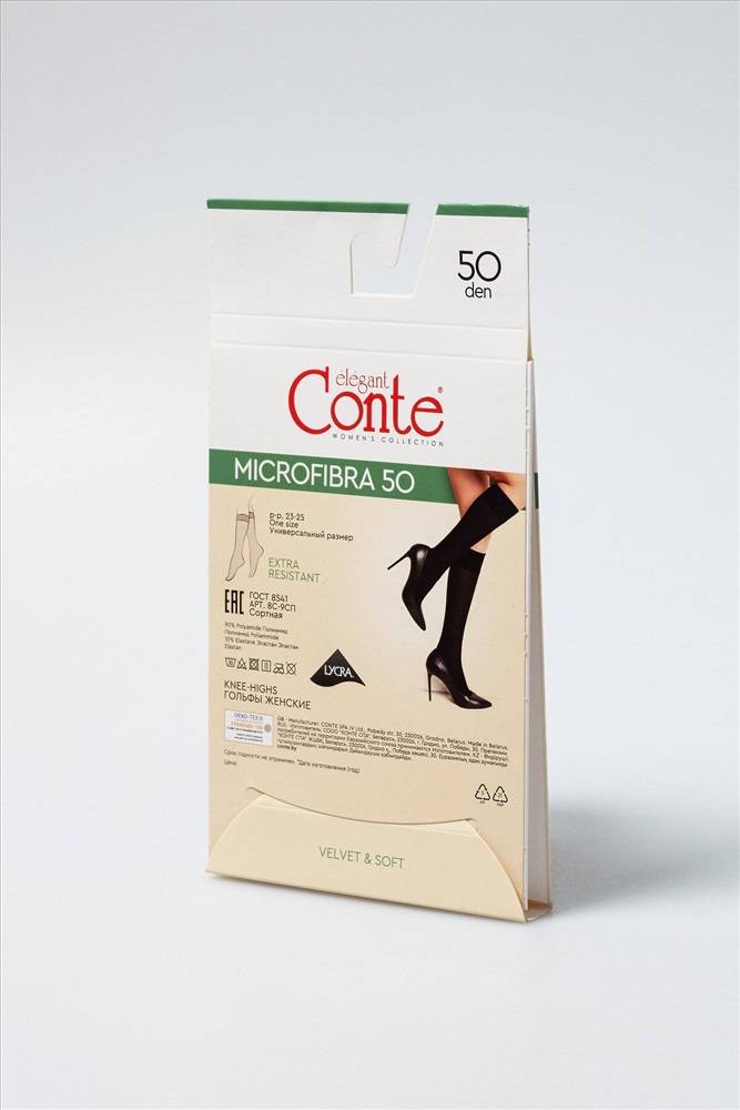 Производитель: CONTE ELEGANT ID товара: 1237106 Состав: Полиамид 90%, эластан 10% Сезон: Весна/Лето Плотность: 50 den Вид носков/гольф: Классические Страна бренда: Беларусь Страна производства: Беларусь