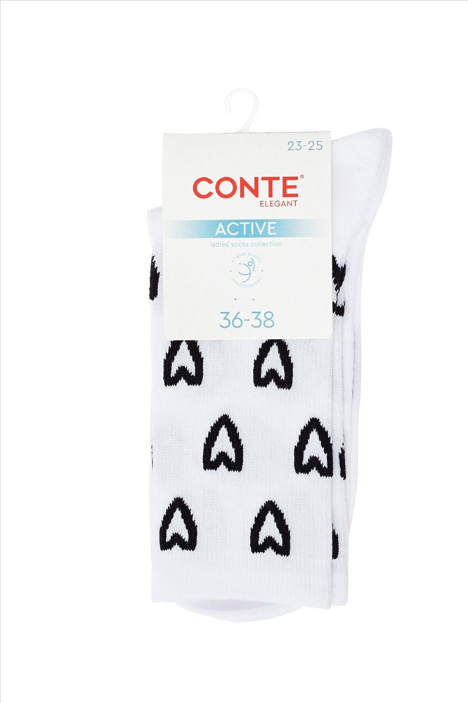 ID товара: 1234170 Состав: Хлопок 55%, полиамид 42%, эластан 3% Сезон: Весна/Лето Рисунок: Сердца Вид носков/гольф: Фантазийные Страна бренда: Беларусь Страна производства: Беларусь Носки женские CONTE ELEGANT ACTIVE, рис. 713 Комментарии к товару