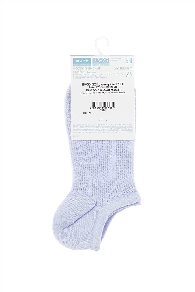 ID товара: 1234102 Состав: Хлопок 68%, полиамид 30%, эластан 2% Сезон: Весна/Лето Вид носков/гольф: Укороченные Страна бренда: Беларусь Страна производства: Беларусь Носки женские хлопковые CE ACTIVE (ультракороткие) 24С-76СП, рис. 618 Комментарии к товару