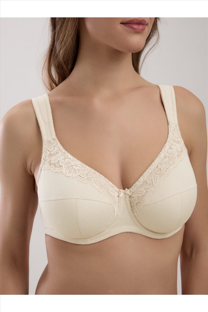Бюстгальтер с мягкой чашкой на каркасах SUPREMA корректирует форму груди и гарантирует безупречную поддержку, необходимую для обладательниц пышных форм. Вам будет комфортно носить белье благодаря функциональным материалам и тщательно выверенным конструкциям. • мягкая чашка на каркасах с тройным T-образным членением • модель из неэластичного жаккардового полотна и эластичного кружева • нижние детали чашек ламинированы хлопком для поддержки и комфорта • стан из упругого трикотажного полотна, функциональные тесьмы и бретели для уверенной поддержки • широкие бретели на дубляже с хлопком • безупречная поддержка и абсолютный комфорт.