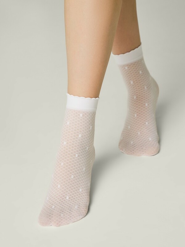 20 Den тонкие и эластичные рисунок в горошек на сетке борт с пикотом без пятки полиамид 88%, эластан 12% Комментарии к товару
