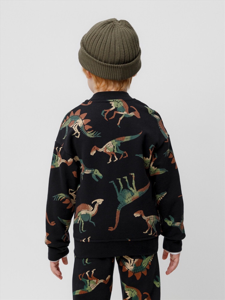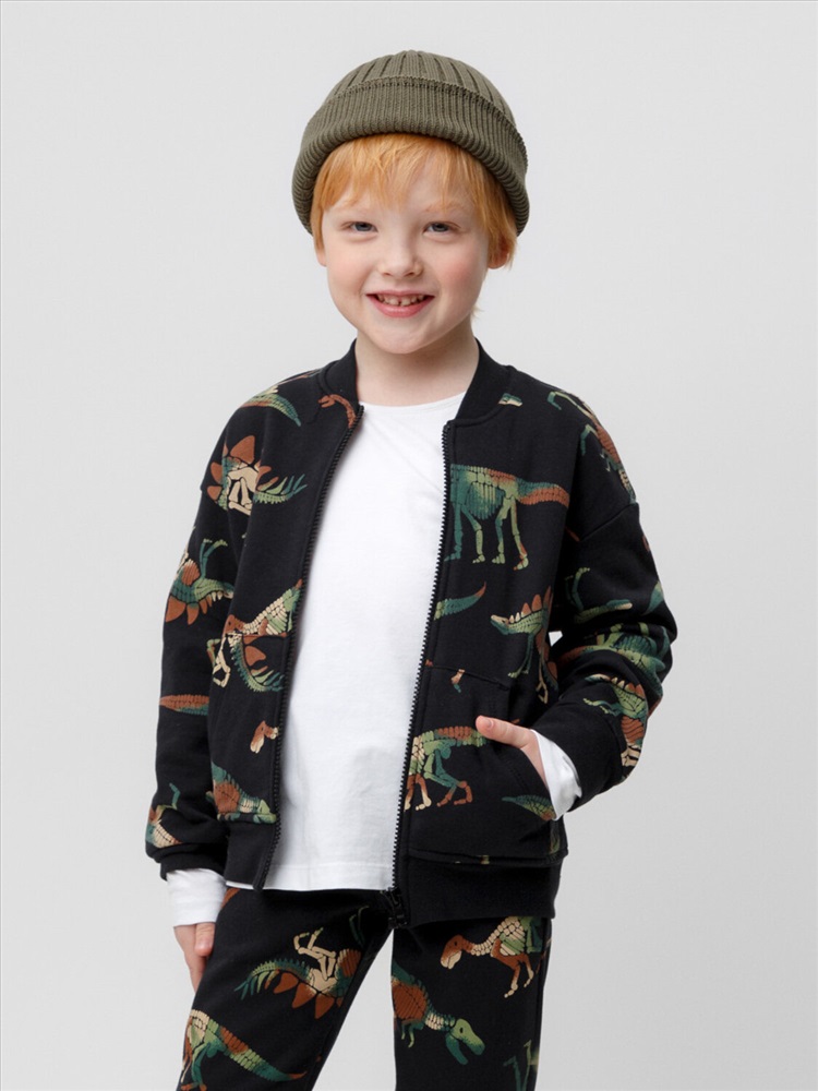 Куртка-бомбер из футера с начесом для мальчика, произведенного из натурального хлопка. У изделия эластичные манжеты и пояс, впереди накладные карманы. Оригинальная набивка выполнена из стойких текстильных гипоаллергенных красителей. Куртка сохраняет цвет и форму после многократных стирок.