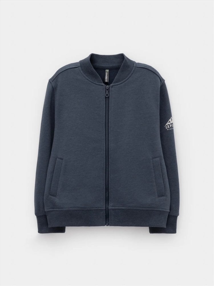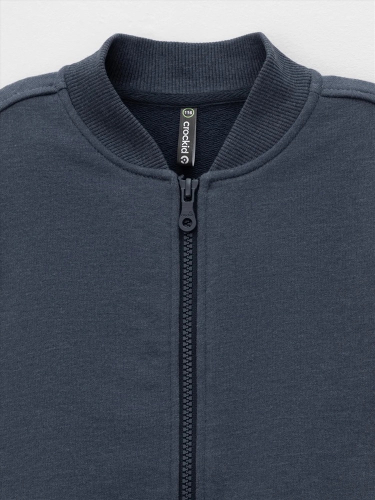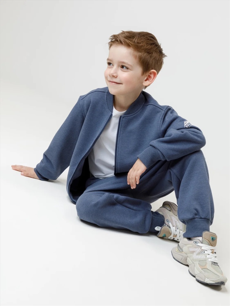 Бомбер для мальчика на молнии. Изготовлен из мягкого петельчатого футера трёхнитки. Воротник, манжеты и пояс выполнены из эластичного полотна. По бокам два кармана. Изделие сохраняет цвет и форму после многократных стирок. Все трикотажные полотна производятся в соответствии с нормами швейцарского сертификата ЭкоТекс.