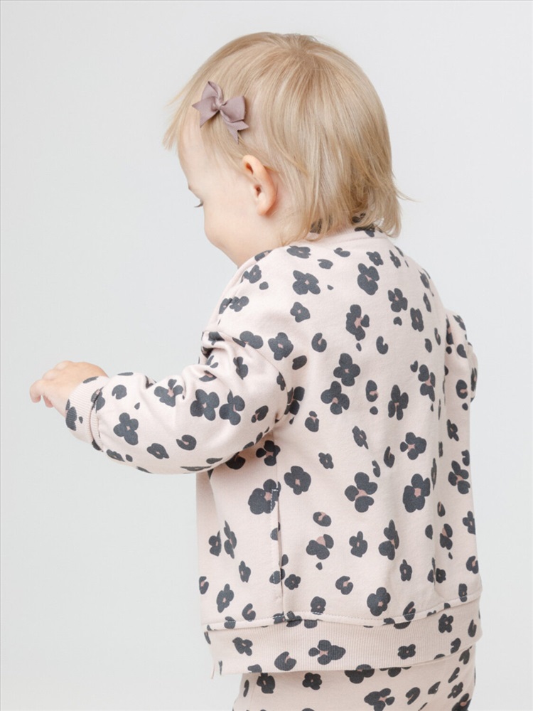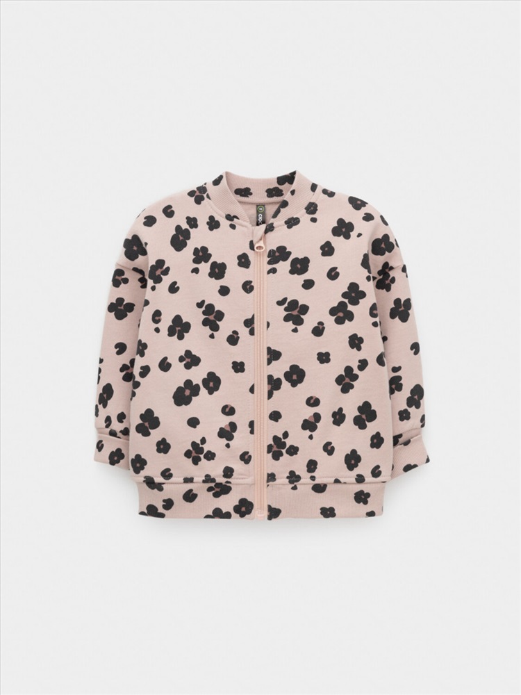 Мягкий бомбер на молнии для девочки. Изготовлен из высококачественного футера с начёсом. Воротник, манжеты и пояс выполнены из эластичного полотна. Оригинальный рисунок выполнен из стойких текстильных красителей. Бомбер сохраняет форму и стойкий цвет после многочисленных стирок. Все трикотажные полотна производятся в соответствии с нормами швейцарского сертификата ЭкоТекс.