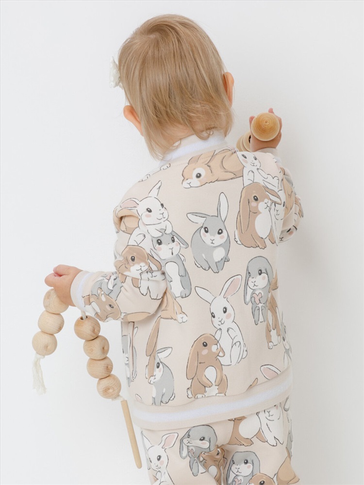 Мягкий бомбер на молнии для девочки. Изготовлен из высококачественного футера с начёсом. Воротник, манжеты и пояс вязаные. Оригинальный рисунок выполнен из стойких текстильных красителей. Бомбер сохраняет форму и стойкий цвет после многочисленных стирок. Все трикотажные полотна производятся в соответствии с нормами швейцарского сертификата ЭкоТекс.