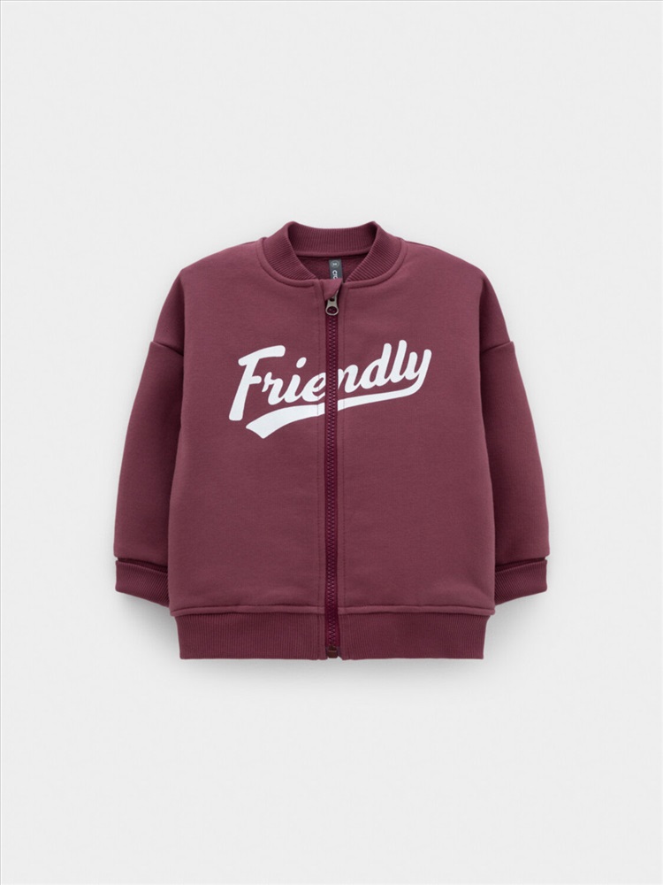 Бомбер для мальчика на молнии. Изготовлен из мягкого петельчатого трикотажа. В составе 80% натурального хлопка и 20% полиэстера, при этом полиэстер ввязан внутрь по особой технологии и не соприкасается с кожей. Воротник, манжеты и пояс выполнены из эластичного полотна. По бокам два кармана. Изделие сохраняет цвет и форму после многократных стирок. Все трикотажные полотна производятся в соответствии с нормами швейцарского сертификата ЭкоТекс.