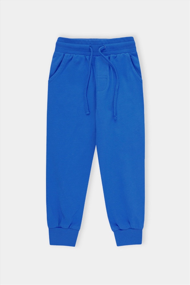 Трикотажные брюки для мальчика из высококачественного трикотажного полотна супрем. Эластичный пояс на резинке регулируется по ширине с помощью шнурка, по бокам два удобных кармана, внизу эластичные манжеты.