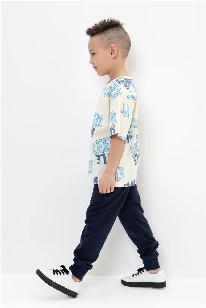 Трикотажные брюки для мальчика из высококачественного трикотажного полотна супрем. Эластичный пояс на резинке регулируется по ширине с помощью шнурка, по бокам два удобных кармана, внизу эластичные манжеты.