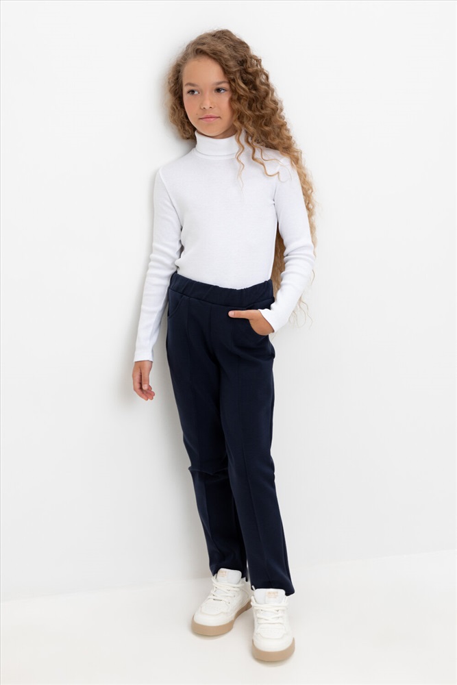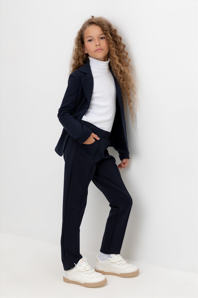 Брюки школьные для девочки прямого кроя с боковыми карманами из плотного трикотажа интерлок. Пояс на резинке позволяет регулировать посадку. Идеальный и комфортный вариант на каждый день.