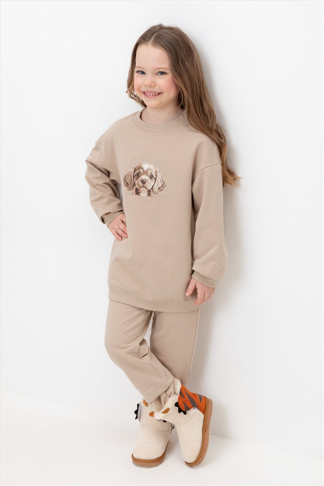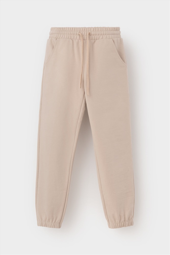 Трикотажные брюки для девочки из петельчатого футера трехнитки. Эластичный пояс на резинке регулируется по ширине с помощью шнурка, внизу манжеты на резинке.