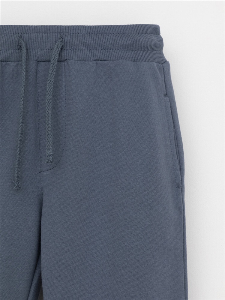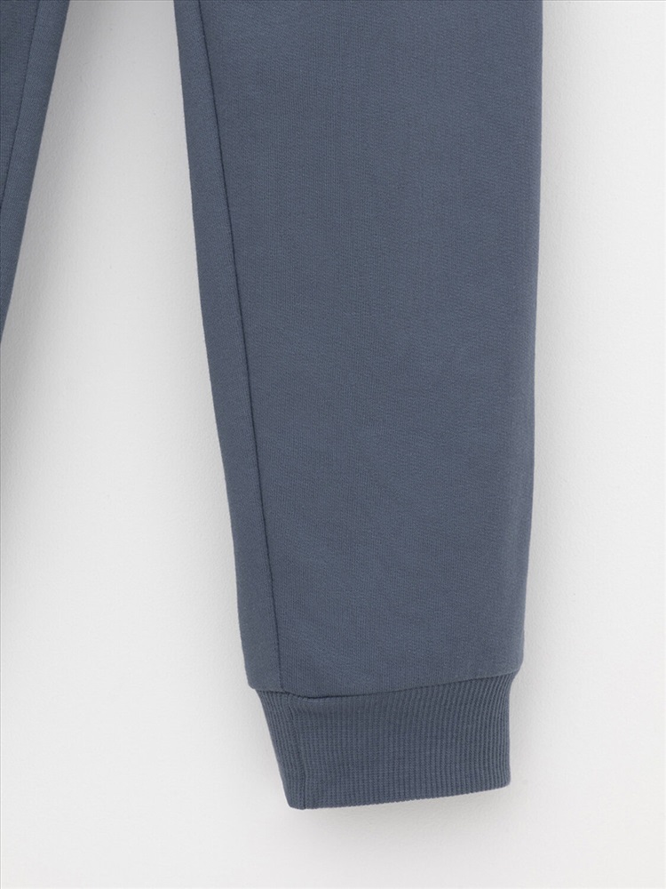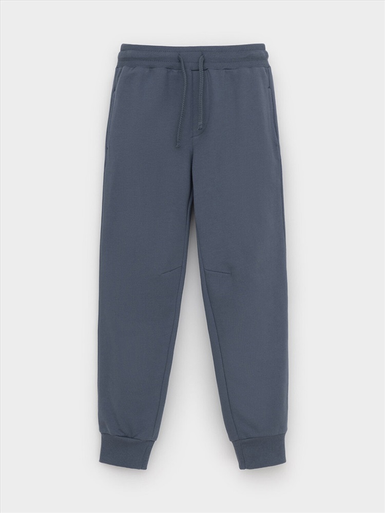 Трикотажные брюки для мальчика из петельчатого футера. Эластичный пояс на резинке регулируется по ширине с помощью шнурка, по бокам два удобных кармана, внизу эластичные манжеты.