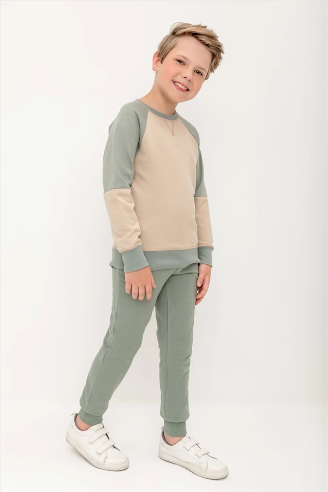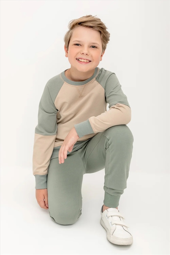 Трикотажные брюки для мальчика из петельчатого футера. В составе 80% натурального хлопка и 20% полиэстера, при этом полиэстер ввязан внутрь по особой технологии и не соприкасается с кожей. Эластичный пояс на резинке регулируется по ширине с помощью шнурка, по бокам два удобных кармана, внизу эластичные манжеты.